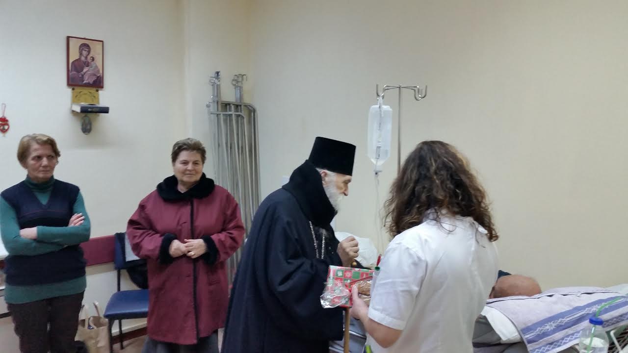 Από τις 4.30 μ.μ. έως και τις 10.00 μ.μ., ο Σεβασμιώτατος επισκέφθηκε όλα τα τμήματα του Νοσοκομείου, μέχρι και τους χώρους των χειρουργείων, μοιράζοντας χριστουγεννιάτικα δώρα (εικονάκια, δέματα με ευλογίες και γλυκίσματα) σε όλους τους ασθενείς, στο ιατρικό, νοσηλευτικό και βοηθητικό προσωπικό, καθώς και στους συνοδούς των ασθενών.
