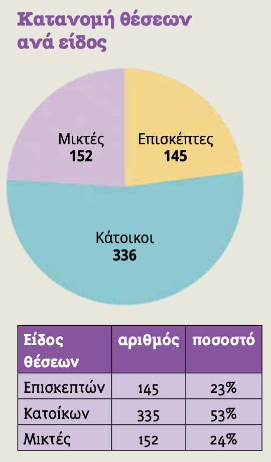 Συγκεκριμένα, στην οδό Αγ. Παντελεήμονος στα πάρκινγκ υπάρχουν 42 θέσεις επισκεπτών και 2 ΑμεΑ, ενώ στο τμήμα από την Ορφέως ως την Πανός τοποθετήθηκαν 8 θέσεις για επισκέπτες, 12 μικτές θέσεις και 1 θέση ΑμεΑ. Στην οδό Άργους υπάρχουν 9 θέσεις κατοίκων, 3 θέσεις δωρεάν επισκεπτών και 1 θέση ΑμεΑ. Στην οδό Διός χωροθετήθηκαν 34 θέσεις κατοίκων, 12 θέσεις επισκεπτών, αφέθηκαν 5 δωρεάν θέσεις για επισκέπτες, 11 μικτές θέσεις και 4 θέσεις ΑμεΑ. Στην Ερμού χαράχθηκαν 3 θέσεις επισκεπτών, 12 μικτές θέσεις, 6 θέσεις κατοίκων, 2 θέσεις δωρεάν επισκεπτών και 2 θέσεις ΑμεΑ. Στην Ήρας έχουν προβλεφθεί 14 θέσεις επισκεπτών, 31 θέσεις κατοίκων και 2 θέσεις ΑμεΑ. Στη Θαλείας δόθηκαν 99 θέσεις σε κατοίκους, 64 μικτές θέσεις, 8 θέσεις δωρεάν επισκεπτών και 7 θέσεις ΑμεΑ. Στην Ιάσονος υπάρχουν 37 θέσεις επισκεπτών, 69 θέσεις κατοίκων, 35 μικτές θέσεις και 8 θέσεις ΑμεΑ. Στην Πανός προβλέφθηκαν 17 θέσεις επισκεπτών, 10 θέσεις κατοίκων, 3 θέσεις δωρεάν επισκεπτών και 3 θέσεις ΑμεΑ. Τέλος, στην οδό Τερψιχόρης προβλέπονται 55 θέσεις κατοίκων, αφέθηκαν 4 δωρεάν θέσεις για επισκέπτες και χαράχθηκαν 2 θέσεις για ΑμεΑ.