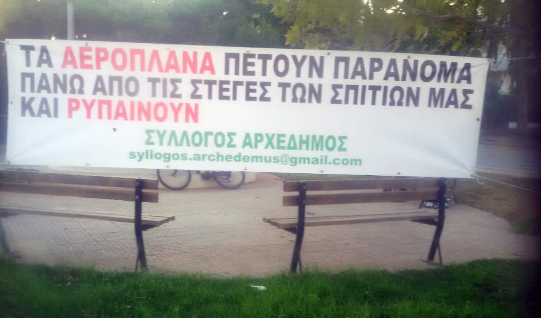 Με πανό καταγγέλλουν τα μέλη του Συλλόγου Αρχέδημος την αεροπορική κίνηση πάνω από τη Βάρη, υποστηρίζοντας ότι Τα αεροπλάνα πετούν παράνομα πάνω από τις...