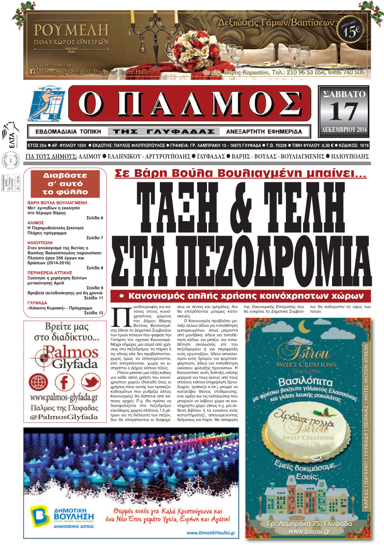 (Δημοσιεύτηκε στην εφημερίδα Παλμός Γλυφάδας, 17 Δεκεμβρίου 2016)