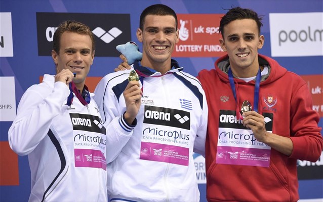 «Χρυσή» σελίδα έγραψε για την ελληνική κολύμβηση ο Ανδρέας Βαζαίος στο ευρωπαϊκό πρωτάθλημα του Λονδίνου. Ο πρωταθλητής κατέκτησε χρυσό μετάλλιο στα 200 μ. μεικτής με 1.58.18, επίδοση που αποτελεί πανελλήνιο ρεκόρ. Πρόκειται για το τρίτο χρυσό μετάλλιο της χώρας μας στην ιστορία του θεσμού (το 18ο στο σύνολο). Προκρίσεις για τους σημερινούς τελικούς κατέκτησαν οι Στέφανος Δημητριάδης και Παναγιώτης Σαμιλίδης.